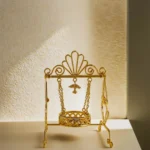 Divine Baby Gold Cradle is an exquisite miniature cradle crafted in 91.60 purity gold, perfect for holding sacred idols during auspicious ceremonies. Adorned with intricate designs, delicate chains, and a charming canopy, this cradle symbolizes love and devotion. Ideal for festivals, poojas, or as a centerpiece in home shrines, it brings an aura of spiritual grace and opulence to any setting.