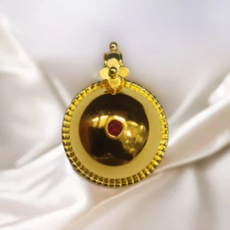 Pottu Thali Mangalyam is an auspicious ornament traditionally worn by married women in South Indian culture. Crafted with intricate designs, this necklace symbolizes marital bliss and is often considered an essential part of a woman’s bridal attire.